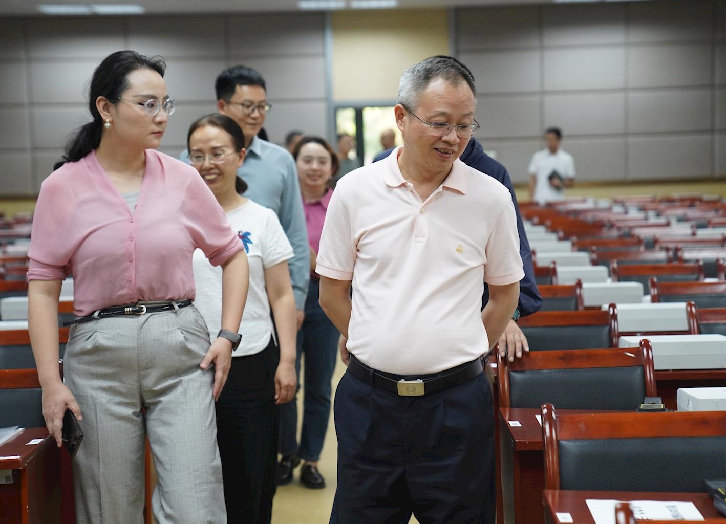 2024年7月,时任副区长陈建(右二)到我校检查工作